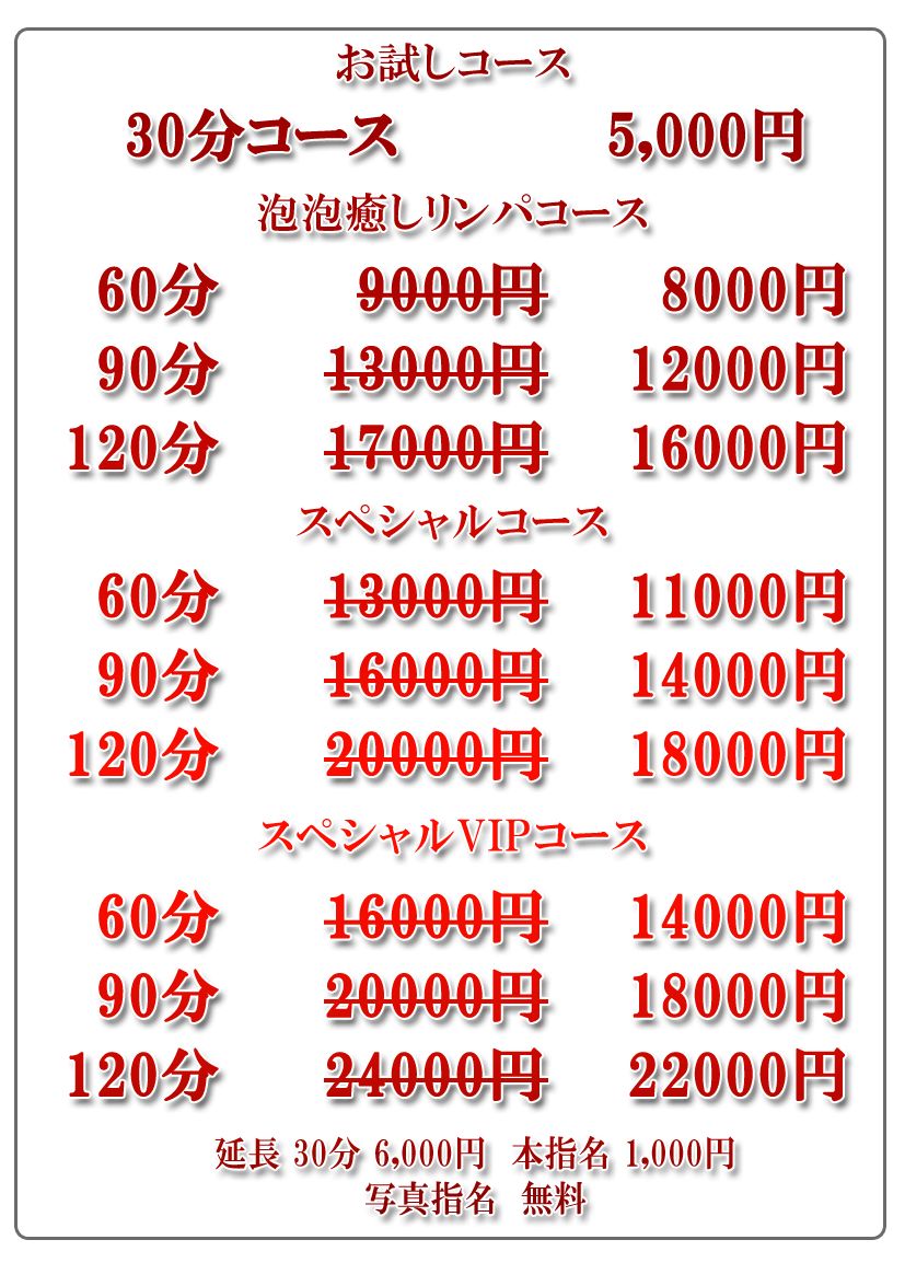 のサービスを時間内で存分に堪能していただくメニューです。